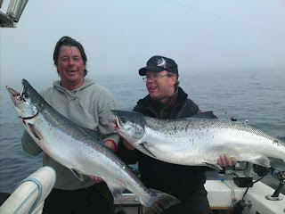 Stort grattis till Per Lundberg som tog en mycket fin lax på 16,3 kg samt en på 14 och en på 11 kg! Martin hade en på 13,8 kg och 2 på strax under 10 kg och Lasse Hedberg några fina laxar runt 10. Ovan följer några bilder på gårdagens laxar.